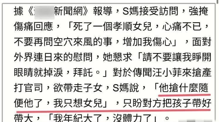 >想想看,大S的遗产,说到底,孩子和具俊晔也有份吧?跟汪小菲争,岂不是跟孩子们争?这种做法,在很多人眼里,确实不太合适。S妈选择息事宁人,倒也符合大多数人的期待。
